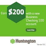 | Huntington Bank Business Checking 100 | $200 Cash | Review |