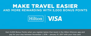 Hilton HHonors App Visa Card Promotion: 5,000 Bonus Points