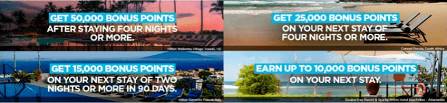 - 50,000 Bonus Offer = Stay for 4 Nights at a targeted hotel.