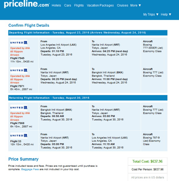 | Los Angeles (LAX) | Bangkok (BKK) |