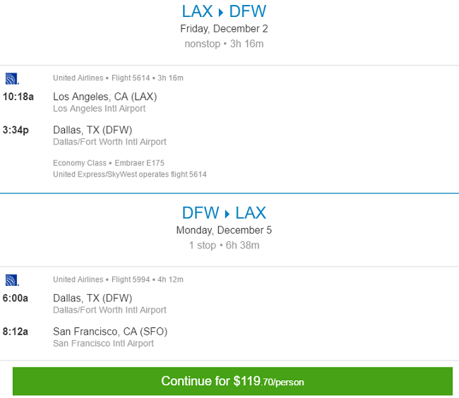 - Promotion: Round-trip from Los Angeles to Dallas $119