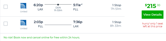 - Promotion: Round-trip from Los Angeles to Fort Lauderdale starting at $215